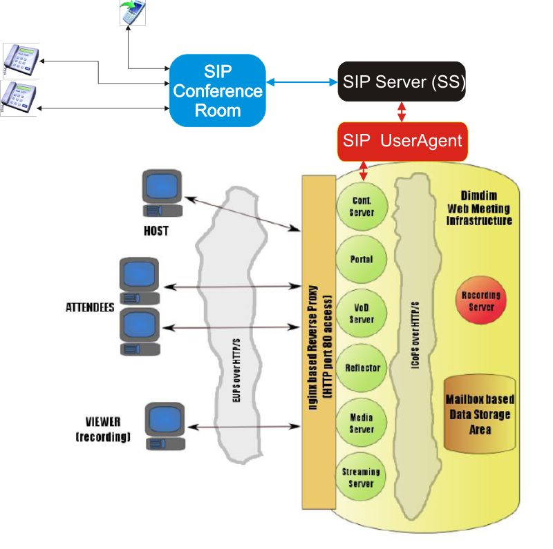 I’ve been trying to integrate DimDim with FreeSWITCH. What I’d like is to create a SIP leg into a FreeSWITCH audio conference room, so meetings running can be listened in conference room as well.