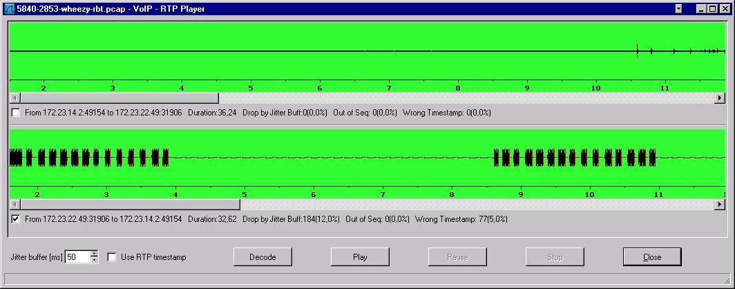 And wireshark analysis of that rtp stream is strange.it shows 22 _seconds_
